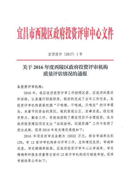 西陵区投资评审中心2016年度优秀评…