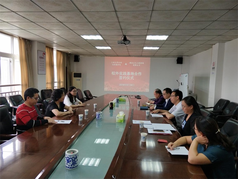2018年9月30日,三峡大学水利与环境学院和我开云体育·开云官方网站-开云体育(中国) 在三峡大学举行校外实践学习基地合作签约仪式。三峡大学水利与环境学院副院长彭辉和董晓华、系主任黄建文、系副主任吴黎明、支部书记安慧、教学办王蕾,我开云体育·开云官方网站-开云体育(中国) 董事长陈清琳及相关部门负责人出席签约仪式。