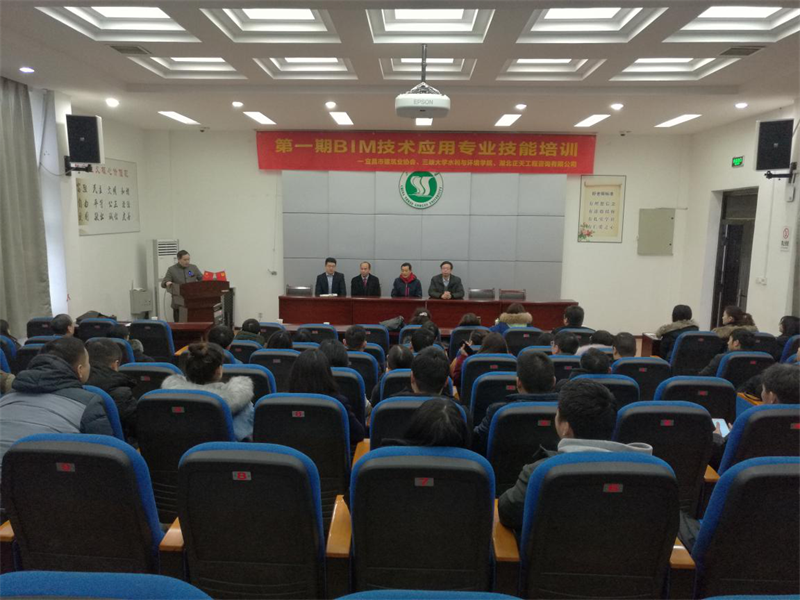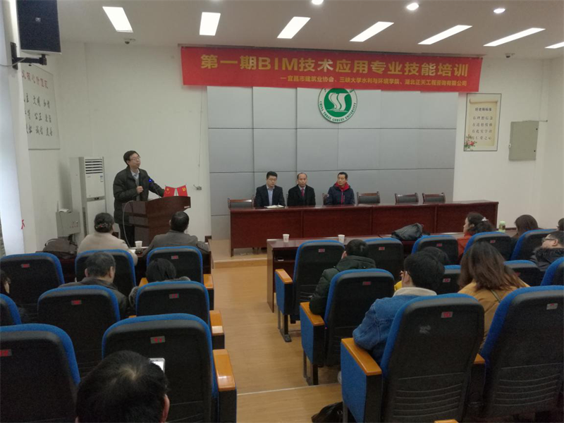 12月10日上午8:30,由宜昌市建筑业协会、 三峡大学水利与环境学院、开云体育·开云官方网站-开云体育(中国) 联合举办的“第一期BIM技术应用专业技能培训”在三峡大学水电楼521报告厅隆重举行。宜昌市建筑业协会副会长、湖北宜翔建设有限开云体育·开云官方网站-开云体育(中国) 董事长周选贵、三峡大学水利与环境学院院长彭辉、工程管理系副主任吴黎明、吴亚良教授、余晓云老师,开云体育·开云官方网站-开云体育(中国)开云体育·开云官方网站-开云体育(中国) 总经理刘治勇、副总经理张健及全体学员出席了培训会。