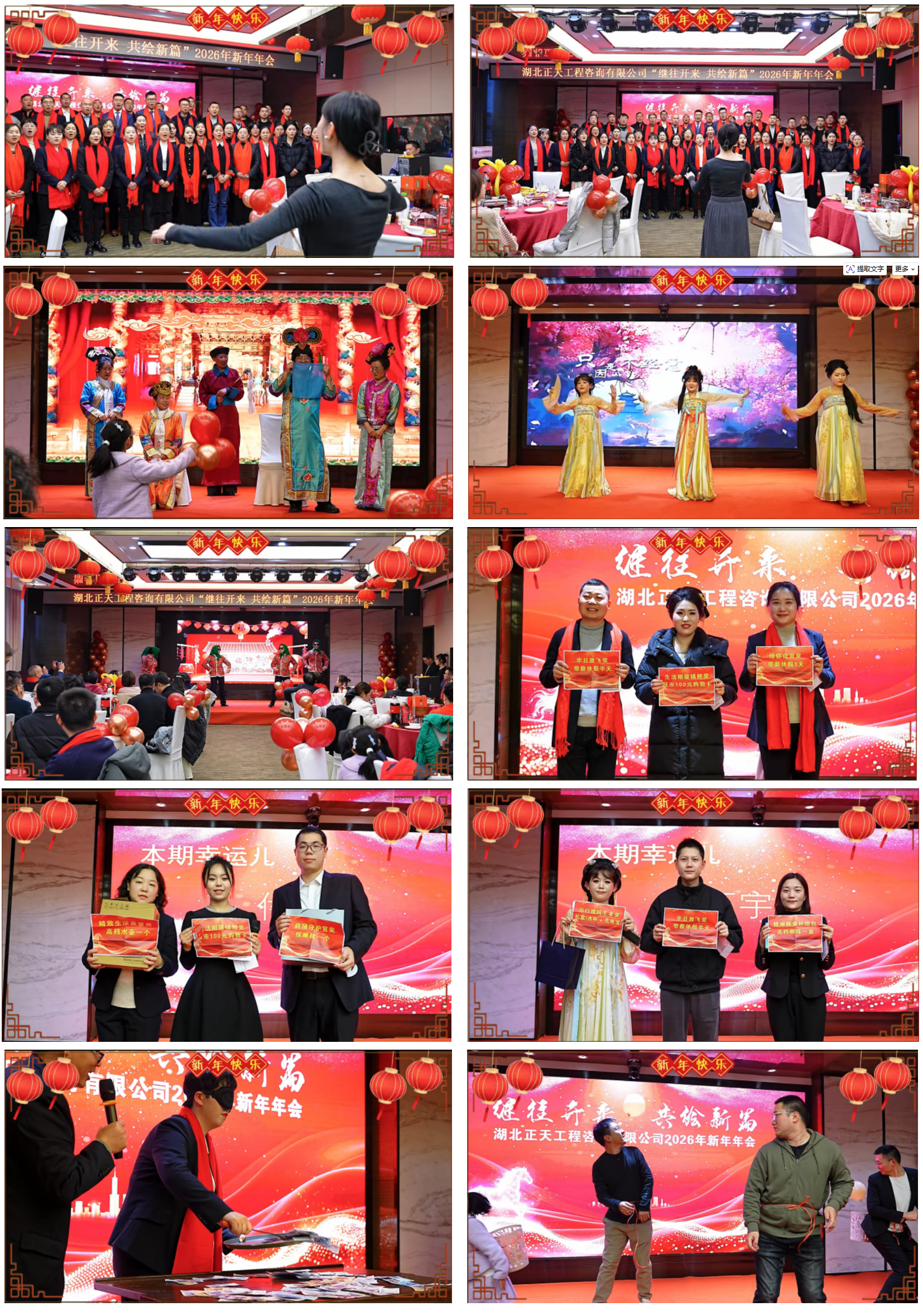 年会现场氛围热烈祥和、精彩纷呈,各类特色活动轮番上演。激昂的大合唱、创意十足的特色节目点燃全场激情,趣味互动游戏让现场欢声笑语不断,惊喜连连的红包雨与重磅抽奖环节,更是将整场氛围一次次推向高潮,尽显团队凝聚力与向心力。