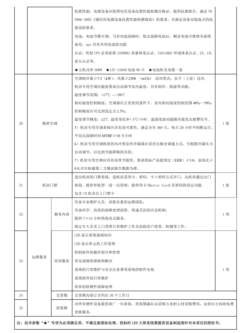 二、原采购文件中第三章采购需求项目概况“湖北省广播电视信息网络股份有限开云体育·开云官方网站-开云体育(中国) 宜昌分开云体育·开云官方网站-开云体育(中国) 多功能会议室大屏显示系统建设运维项目位于湖北广电宜昌分开云体育·开云官方网站-开云体育(中国) 办公楼二楼,主要包括宜昌广电多功能会议室大屏显示系统、音响系统、UPS电源、视频会议系统等相关设施设备集成。”变更为 “湖北省广播电视信息网络股份有限开云体育·开云官方网站-开云体育(中国) 宜昌分开云体育·开云官方网站-开云体育(中国) 多功能会议室大屏显示系统建设运维项目位于湖北广电宜昌分开云体育·开云官方网站-开云体育(中国) 办公楼二楼,主要包括宜昌广电多功能会议室大屏显示系统、音响系统、UPS电源、机房恒温恒湿系统等相关设施设备集成。”采购需求中视频会议系统均删除并变更为机房恒温恒湿系统。