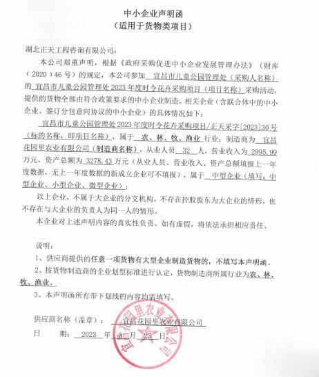 名称:宜昌市儿童公园管理处2023年度时令花卉采购项目 品牌:时令花卉 规格型号:时令花卉 数量:一批 |