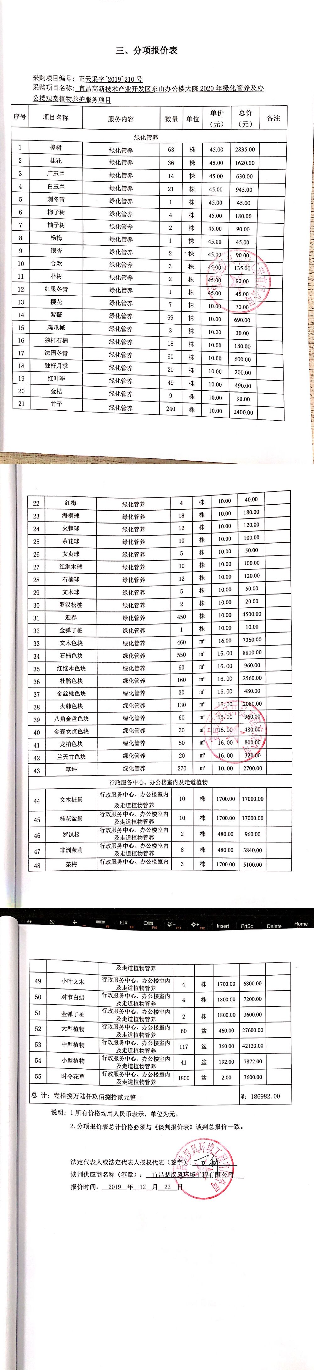 四、采购内容:宜昌高新技术产业开发区东山办公楼大院2020年绿化管养及办公楼观赏植物养护服务项目项目一项,包括行政服务中心、办公室、1-10楼电梯间、办公大楼门前的花卉租摆及室外约2600平方米的绿化管养, 室外植物种类有桂花树、香樟、柚树、银杏、映山红、罗汉松桩、红继木、法国冬青等。