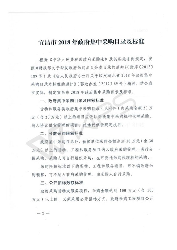 市人民政府办公室关于印发宜昌市2018年政府集中采购目录及标准的通知